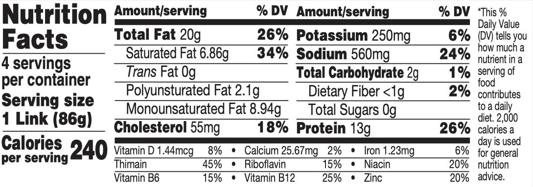 12 oz pack - (Four 3oz links per pack)